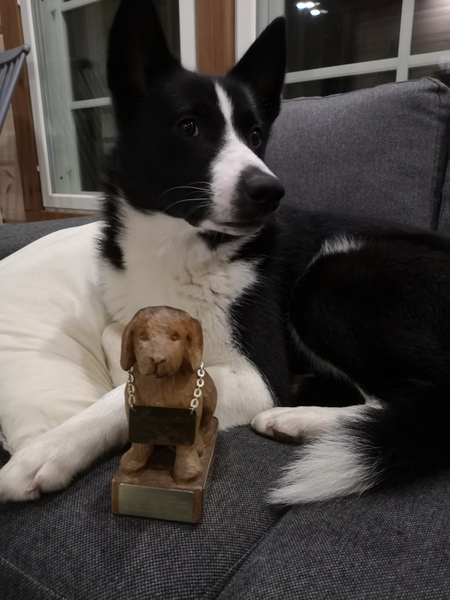 Karjalankarhukoira, narttu, ROHMOIVAN EEVI, "Eevi"